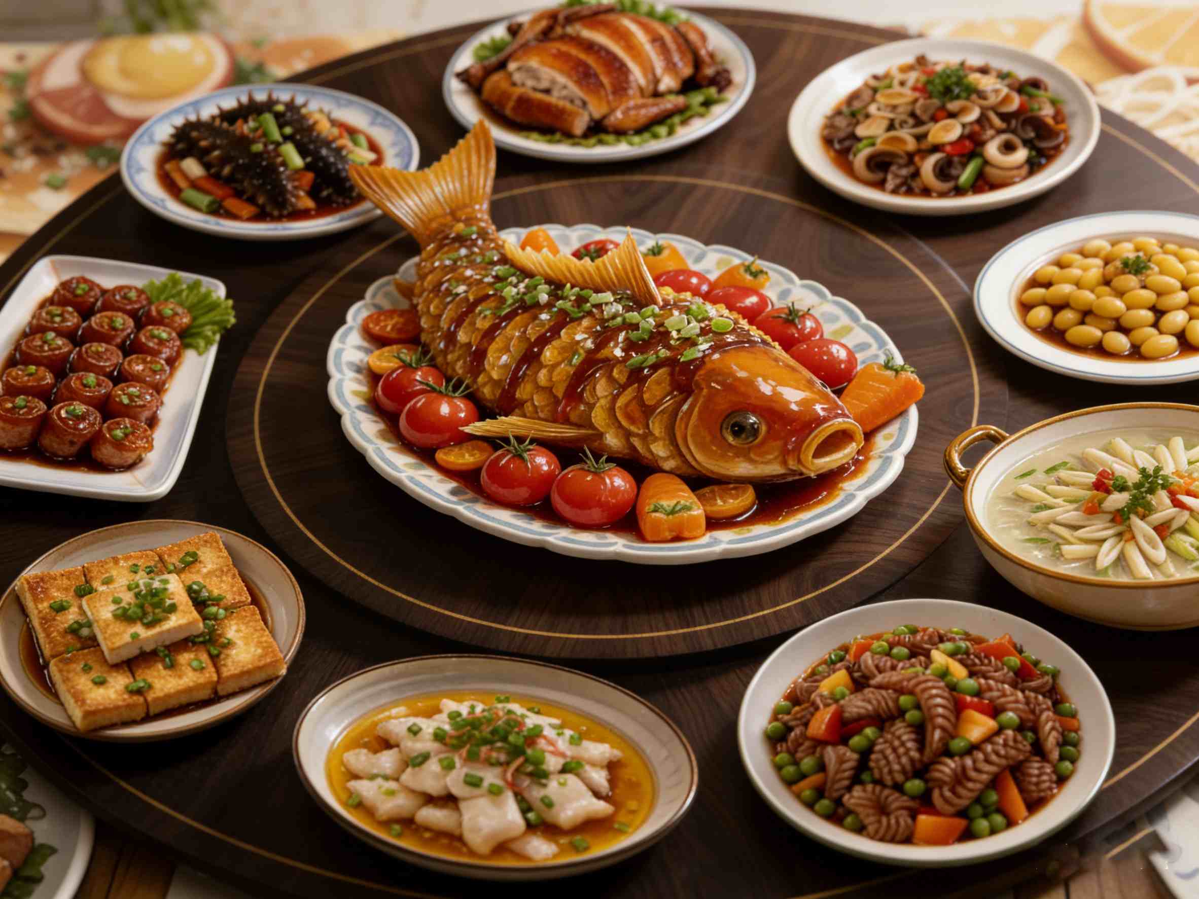 Sukaldaritza aldetik, txinatarrek elikadura eta zaporeen nahasketa orekatua azpimarratzen dute, bisualki erakargarriak, aromatikoak eta goxoak diren platerak helburu. Errazioak mahaikide kopuruaren arabera prestatzen dira normalean, gosearen asebetetzea eta alderdi nutrizionalen eta estetikoetan asetzea bermatuz.
